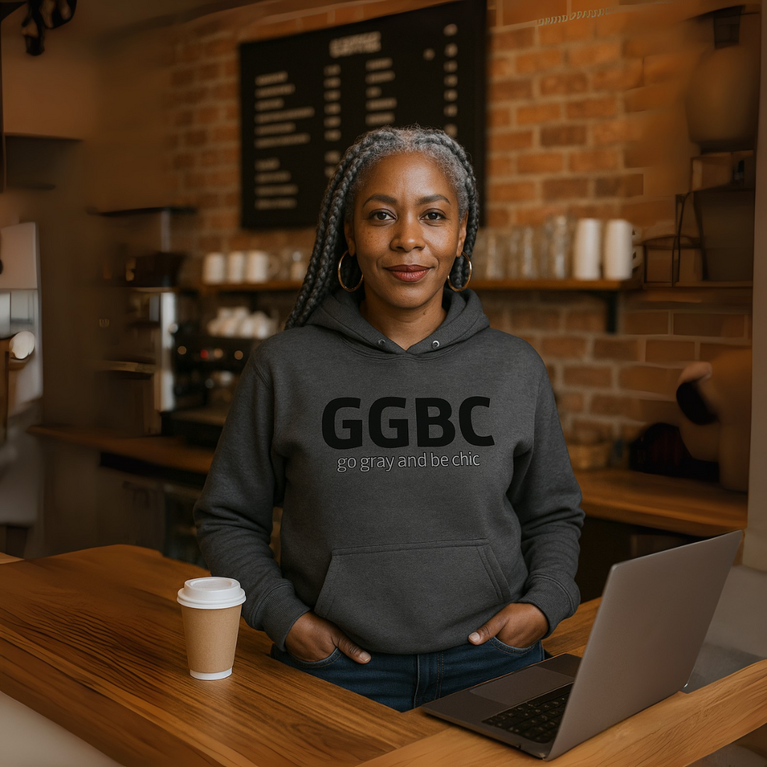 And made to turn heads—the BIG GGBC hoodie keeps it clean with our signature letters and the “go gray be chic” vibe right underneath.